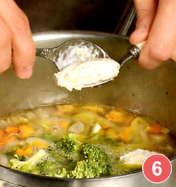 6. С помощью 2 чайных ложек сформовать из овсяной массы клецки, опустить их в кипящий суп и варить еще 3-4 мин.