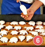 6. Снять пряники с противня и остудить на решетке. Переложить на рабочую поверхность, облить глазурью и украсить цукатами.