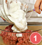 1. Мясной фарш выложить в большую миску. Хлеб разломать на небольшие кусочки и размочить в молоке. Слегка отжать и добавить в фарш. Белки взбить и, осторожно перемешивая, ввести в фарш.